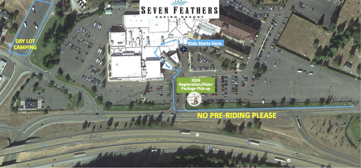 On-Site registration & Rider package pick-up in Seven Feathers Casino Resort main parking lot: